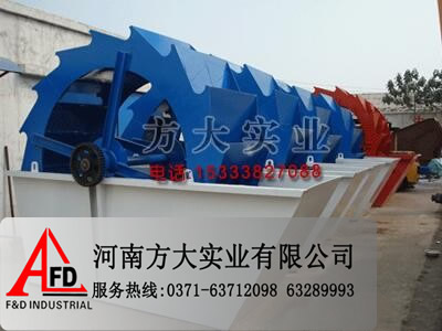 高效輪斗式洗砂機,是河南方大實業股份有限公司引進國外同類產品提高前輩技術推出的具有國際提高前輩水平的砂石和礦渣顆粒的洗選設備。 洗砂機用途: 該機廣泛用于砂石場、礦山、建材、交通、化工、水利水電、混凝土攪拌站等行業中對物料的洗選。