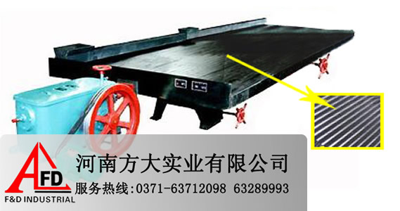 搖床主要由床頭、電動機、調坡器、床面、礦槽、水槽、來復條以及潤滑系統等八個部分組成床面的縱向